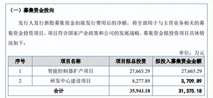 据短平快解读了解,本次IPO,拓普泰克拟向不特定合格投资者公开发行股票数量不超过11,558,970股(未考虑超额配售选择权),拟募集资金3.14亿元,用于智能控制器扩产项目以及研发中心建设项目,拟投入募集资金分别为2.77亿元、0.37亿元,其中研发中心项目较此前申报稿减少4568万元。