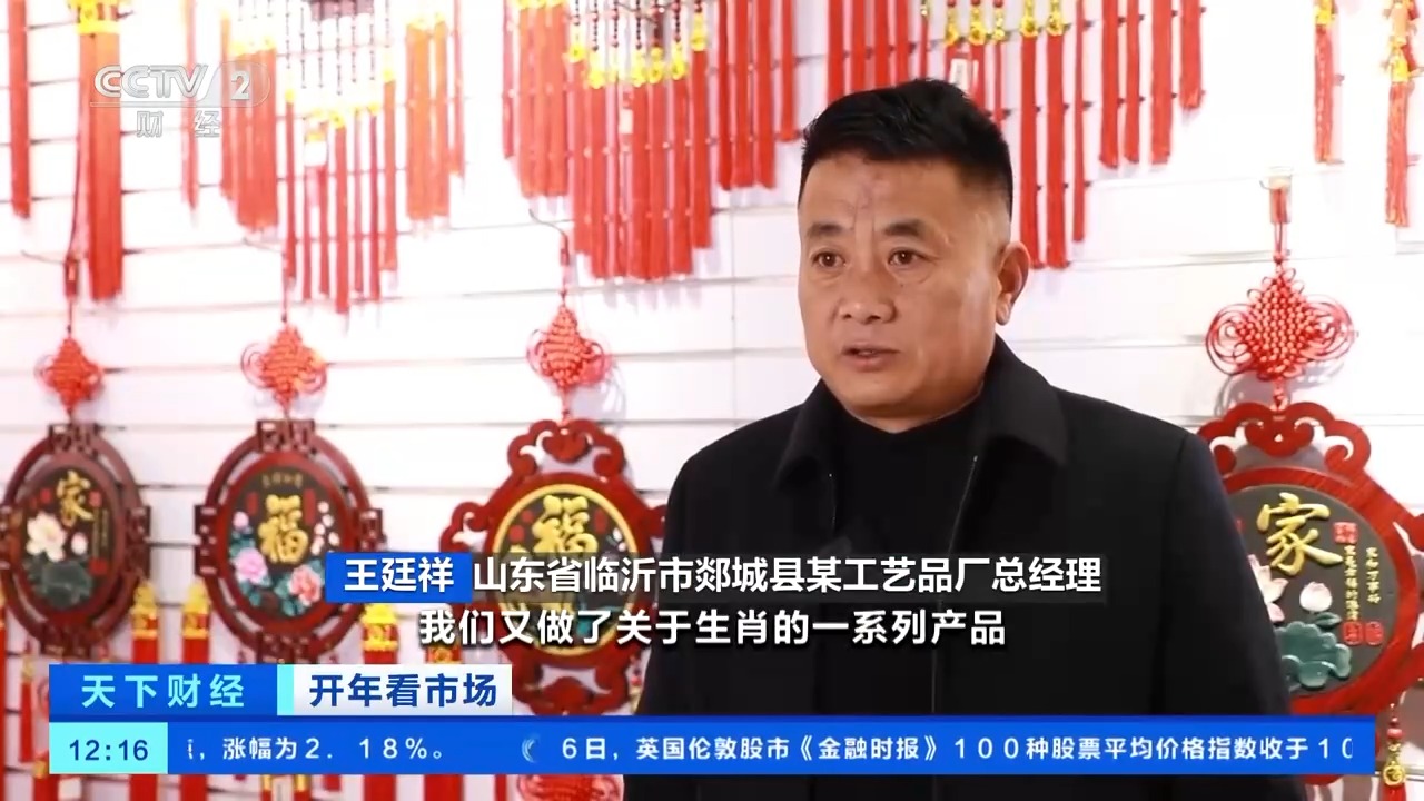 山东省临沂市郯城县某工艺品厂总经理 王廷样:今年我们的产品采用了环保材料,叫活性炭雕。今年是马年,我们又做了关于生肖的一系列产品,比如马上有福、马上来财,这些都比较受市场欢迎。