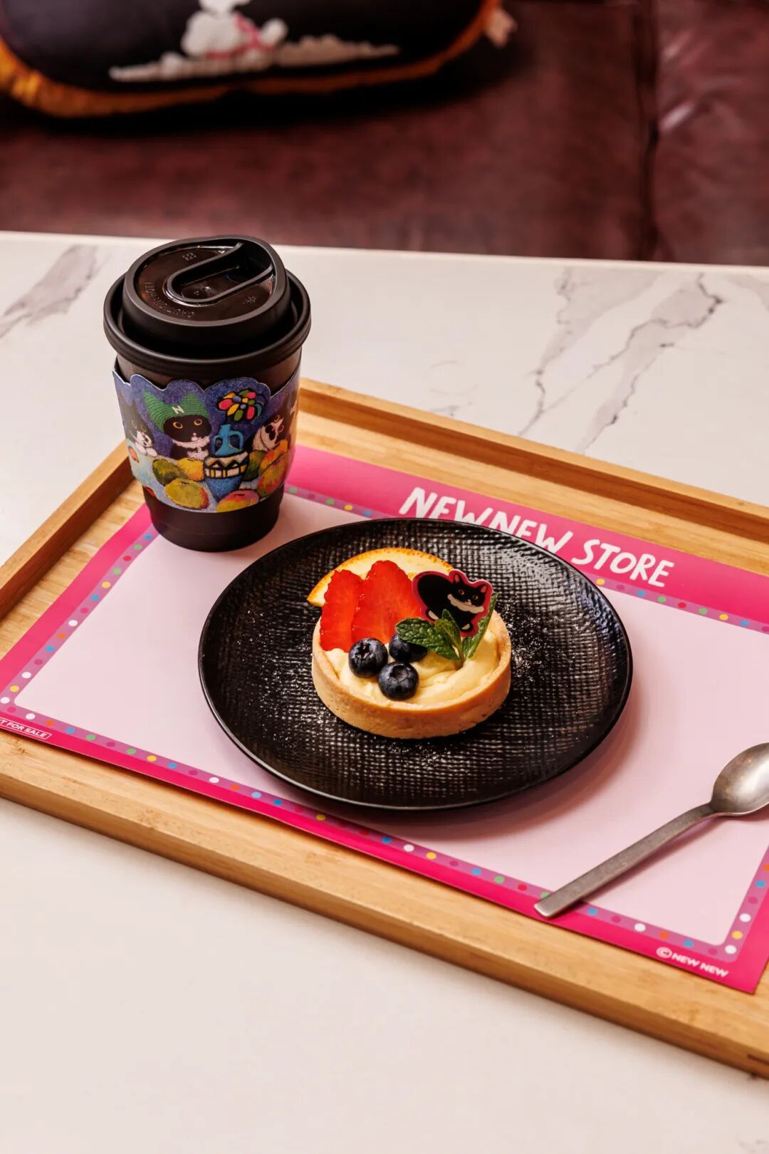 该IP凭借线条不羁、色彩鲜明的野兽派画风,以及还原慵懒日常、打工百态的趣味形象圈粉无数年轻人,从进门处的萌趣主题美陈到店内精心布置的打卡角落,每一处都藏着作者笔下的NEWNEW小世界,不管是与巨型NEWNEW立牌合影,还是在主题墙前留下微笑,这绝对是出片率超高的假期打卡胜地。